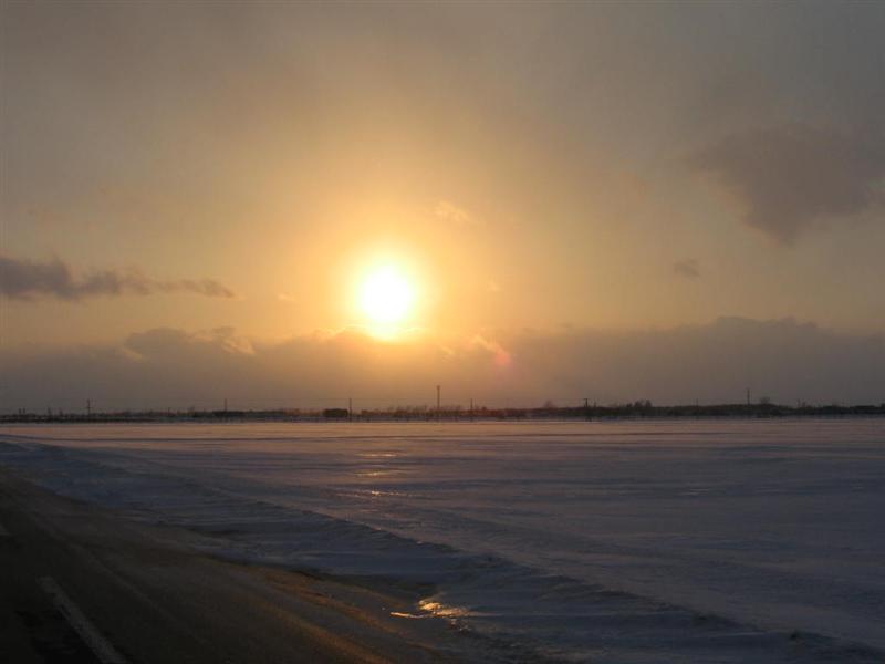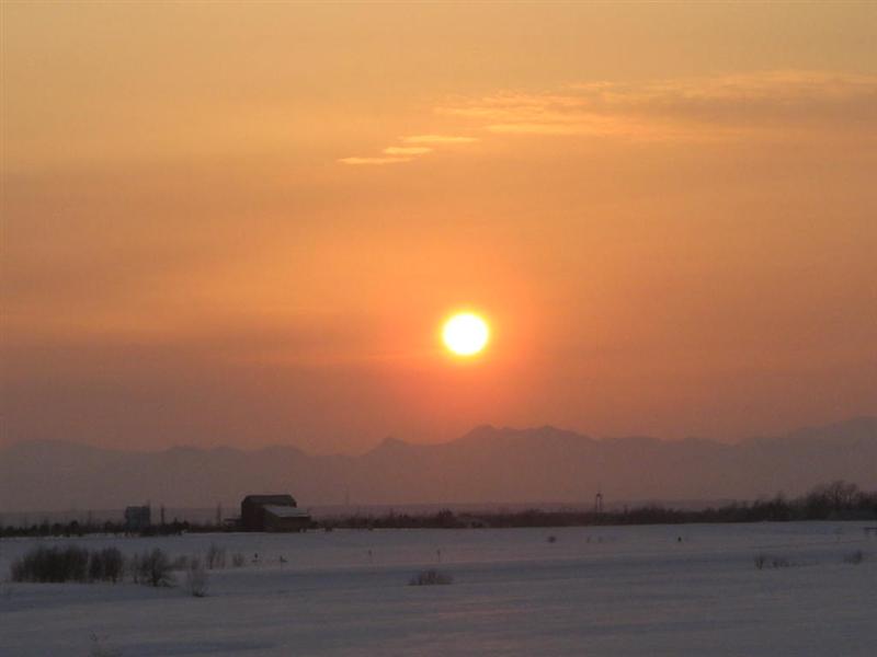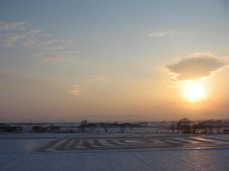 えっとねぇ 夕陽の頃 雪がチラついていたんだよ。