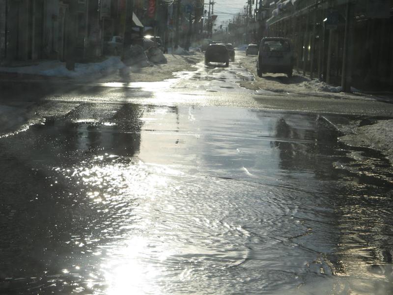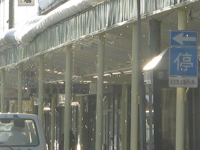 アーケードの上の雪が融けて ポタポタだよ