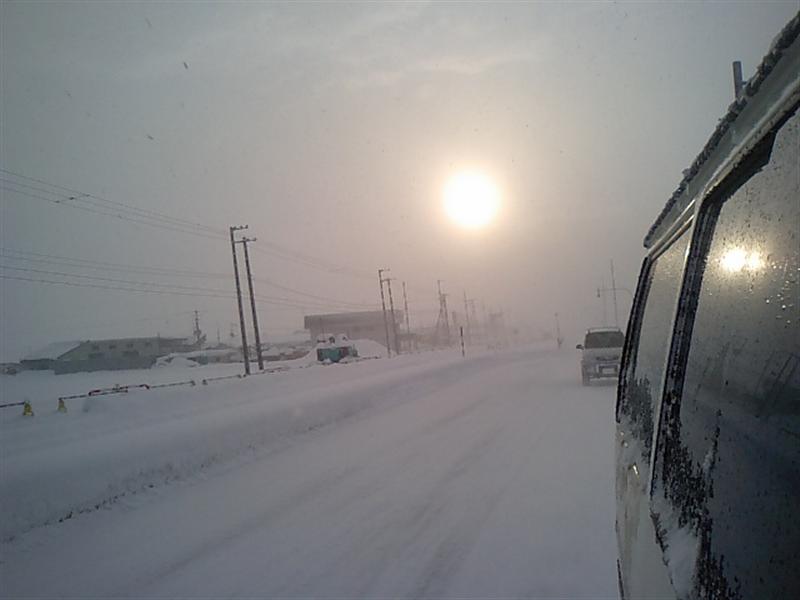 雪の中 太陽も霞んでおります・・・