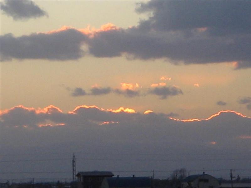 夕陽は雲の中に落ちたんだけど。