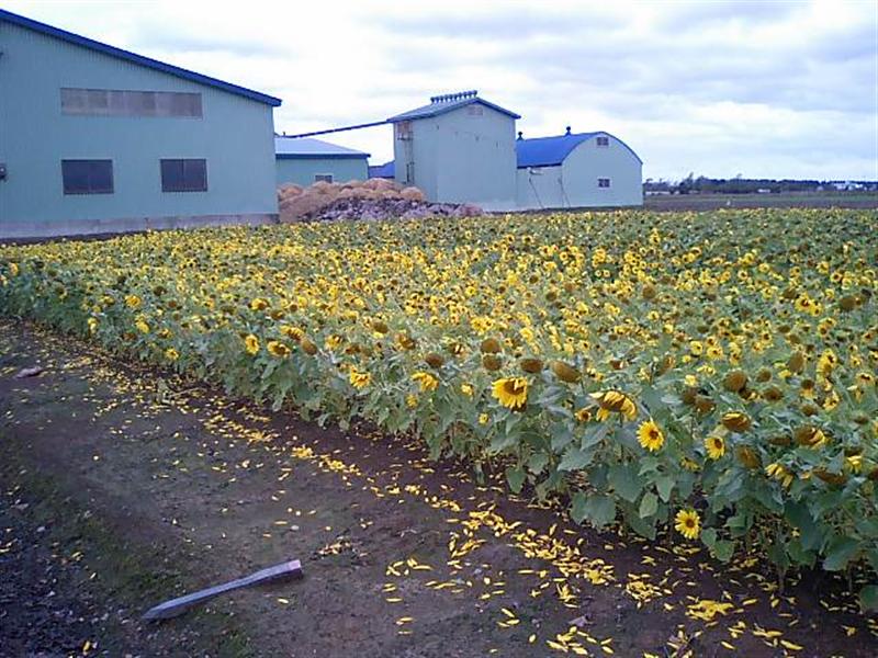 風が強くて向日葵の花びらが・・・
