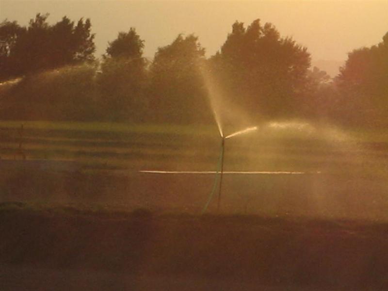 夕刻にこんな風景を見たよ。スプリンクラーで水を撒いておりました。
